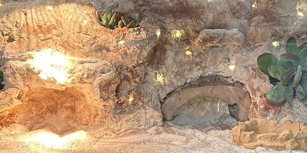 This desert enclosure has fairy lights imbedded in the background for a really cool visual effect!